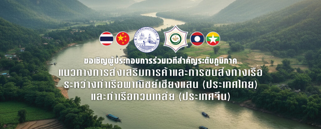 News-THขอเชิญผู้ประกอบการร่วมเวทีสำคัญระดับภูมิภาค “แนวทางการส่งเสริมการค้าและการขนส่งทางเรือระหว่างท่าเรือพาณิชย์เชียงแสน (ประเทศไทย) และท่าเรือกวนเหล่ย (ประเทศจีน)” Leave a Comment / News-TH / admin สมาคมการค้าส่งเสริมแ
